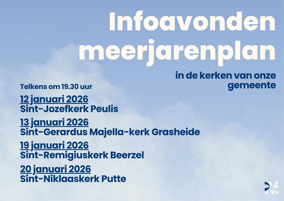 De inwoners van Putte krijgen in januari vier kansen om meer te weten te komen over de toekomst van hun gemeente. Het gemeentebestuur organiseert infoavonden over het nieuwe meerjarenplan in de kerken van Peulis, Grasheide, Beerzel en Putte.