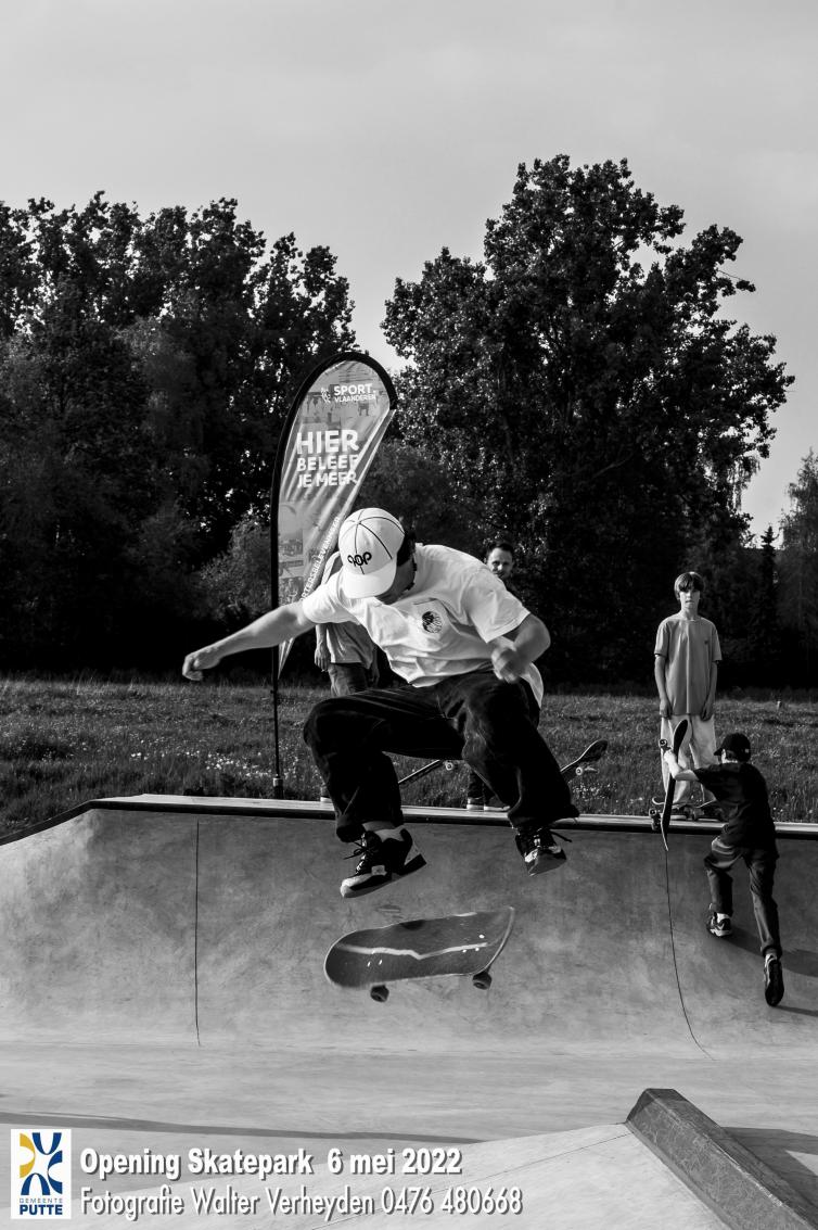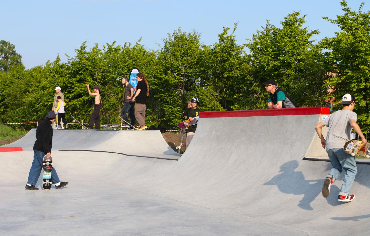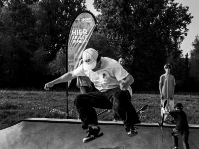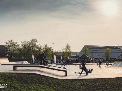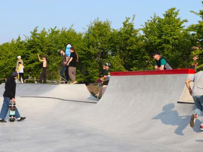 Naast de sporthallen vind je een betonnen skatepark, helemaal gebouwd in samenspraak met de lokale skatecommunity. Het park werd ook gegoten door een doorwinterde skater en zijn team. Vandaag is het een plek waar beginners perfect de eerste pushes op een skateboard kunnen doen en ervaren skaters zich volledig kunnen uitleven op alle obstakels.